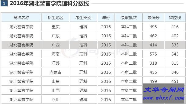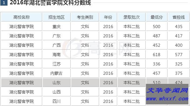 2016年湖北警官学院招录分数: